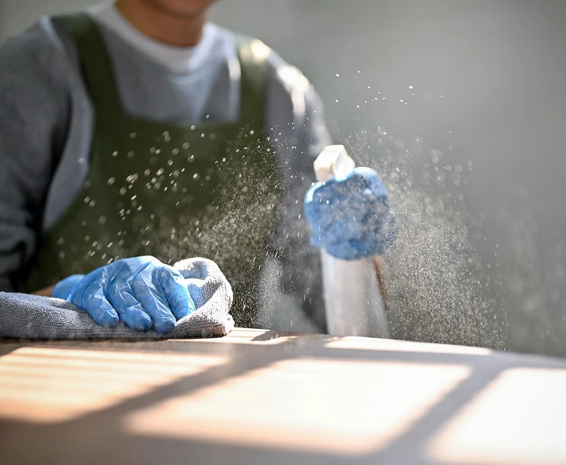 - Mycie i dezynfekcja armatury i innych powierzchni w toaletach